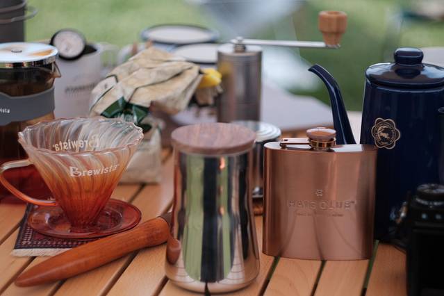露营与咖啡也是很美好的关系,在这里时间变得不那么快,一切都慢下来,自己手冲一杯咖啡。