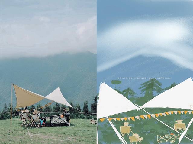 天幕、帐篷、好看的桌椅、篝火。好像露营是自带氛围的风景。