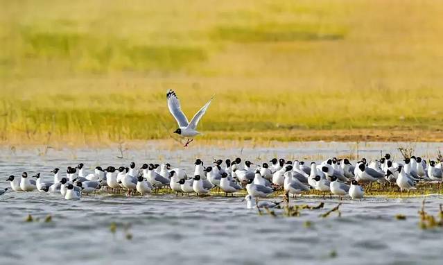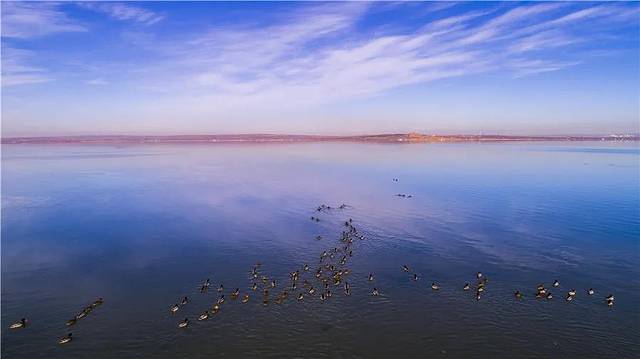 这里还有种类数量众多的候鸟,自由的翱翔在湛蓝的湖面,黄昏时分,安静的栖息下来。