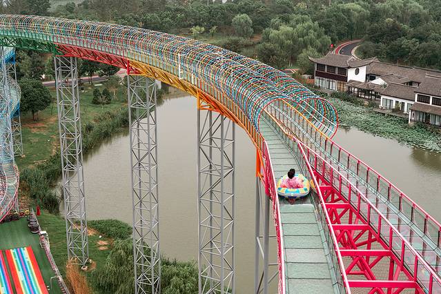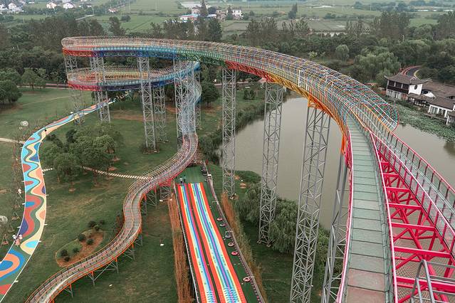 ▫️七彩滑道:草坡被色彩装点,像小时候的滑梯变身超长版。