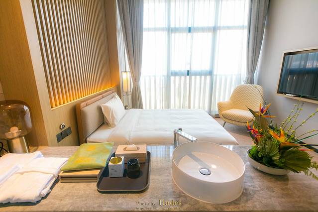 吃过早餐,我们从亲子套房换到豪华私汤套房。步入房间的最大感觉就是大!这么说,房间宽敞到室内还有盆景景观!真的是躺在床上就可以直面绿树蓝天!