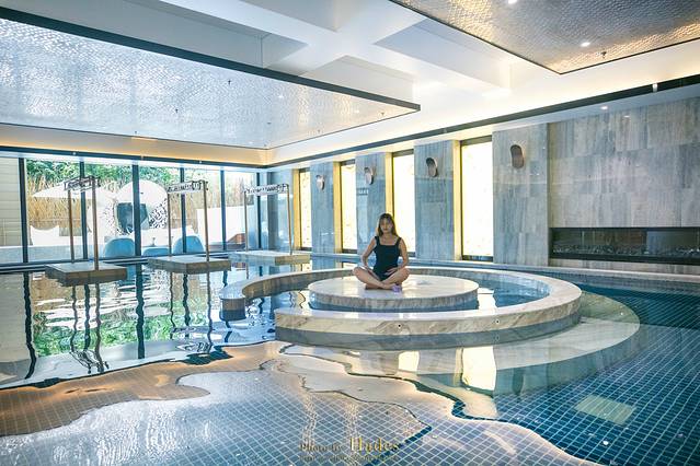 终于上到三楼了!臻温泉每一层的诱惑都很多,所以就举步维艰了!如果是超级喜欢泡汤的旅友,建议进入臻温泉后,换好泳装可以直奔三层,因为这里才是温泉的精华所在。三层有众多的室外泡池,这些泡池大小不同,功能各异。
