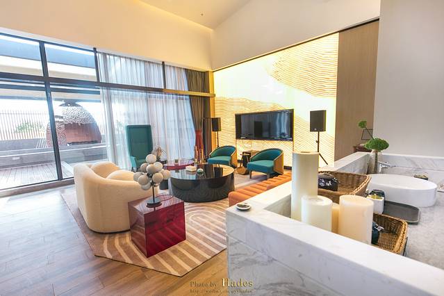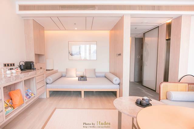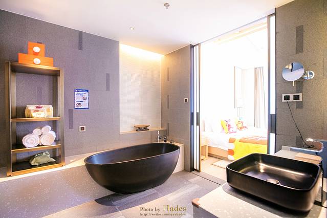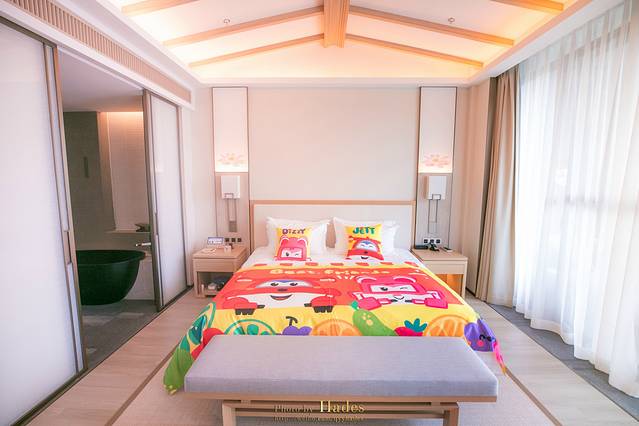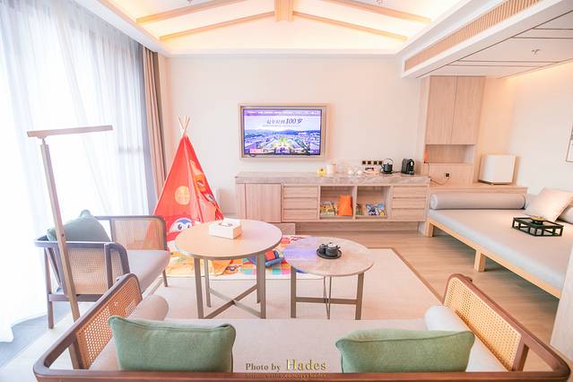 吃饱喝足,我们来说说酒店房间。悦酒店有多种房型,其中的亲子房和各种套房都极具特色。这次着重体验了亲子套房和豪华私汤套房。