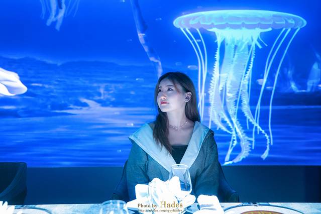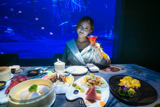 晚餐的话,如果想要更浪漫更有氛围更带感的话,不妨到悦酒店旁臻温泉二层的这间海底风情餐厅享受一下。