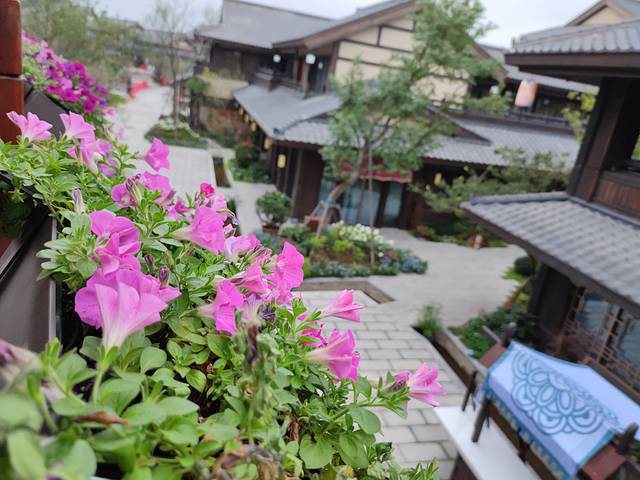 沿着街道行走,两旁都是草丛鲜花,小桥流水。