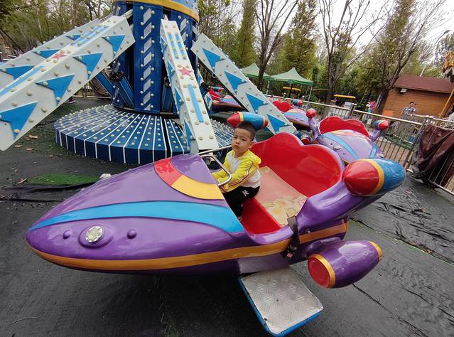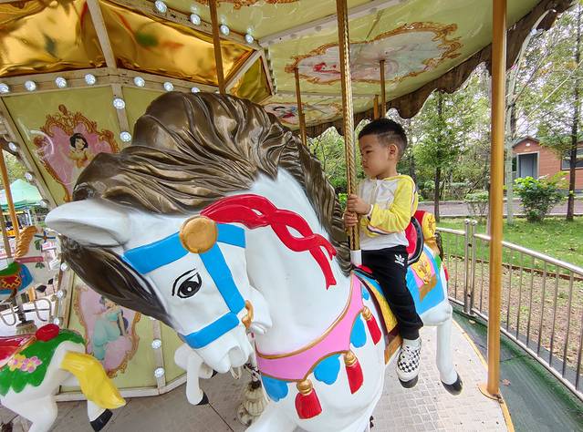 虽说这里项目不多,但麦兜同学却玩的尽兴,小飞机做了两遍,旋转木马上咯咯直笑。