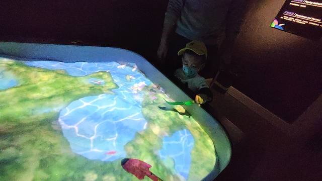 步入啤酒博物馆的第一站就是这个拾光之城的光影秘境,里面有根据人体温度随之变化的热感光影、有堆高是山,铺平是海的光影沙池,还有3D扫描的绘画小鱼。