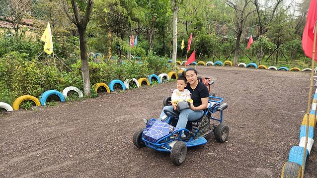 第1次体验卡丁车的小朋友被卡丁车的速度惊艳到,带上头盔的麦兜同学像极了一个帅气的赛车手。