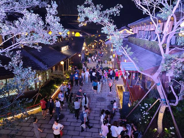 夜幕里的阿朵花屿,灯火阑珊,人影错落,古香古色的十分惬意。