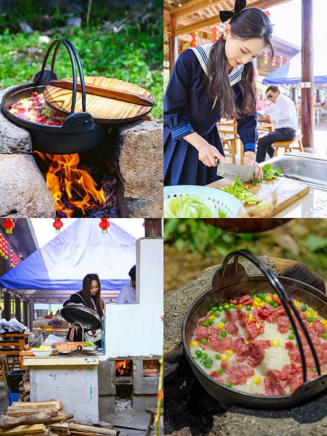 特色石锅饭:架在石头上烹饪而成,锅底还有一层香脆的锅巴,好吃又美味