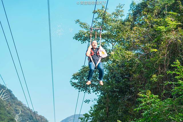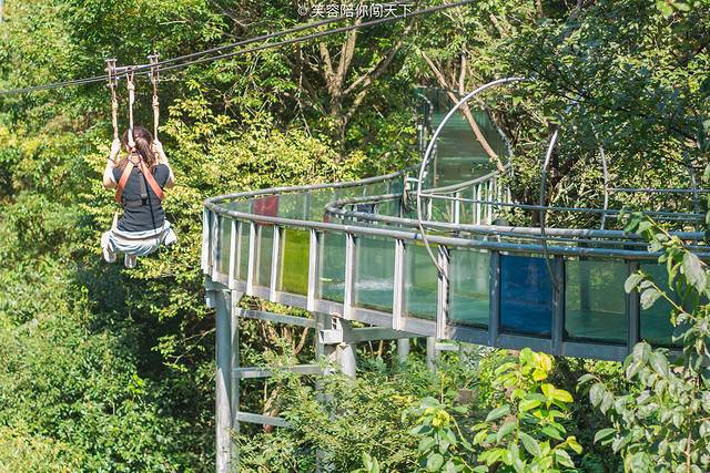 透明的漂流水道盘旋匍匐在山间,仿佛一条跃跃欲试,即将腾飞的巨龙。我好似乘坐这条巨龙的肩膀上,从云端冲入水底,感受妙不可言。下次你来一定要体验一次这个空中漂流,相信你也会爱上这里。另外,如果你不想玩高空漂流,那也可以尝试高空滑索,也是个好玩又可当代步工具的项目呢~