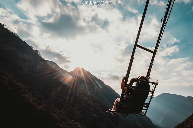 悬崖秋千在空中自行车的另一端,看过电视剧《媚者无疆》的朋友想必都对长安和晚媚一起荡悬崖秋千的那幕印象深刻,因为实在是太浪漫了。浙北大峡谷的顶端就有同款悬崖秋千,闭上眼睛,温柔的风拂过耳边,脚下是峡谷壮美的风景,仿佛下一秒就会长出翅膀飞上天空,真的是一秒化身言情小说女主的感觉。