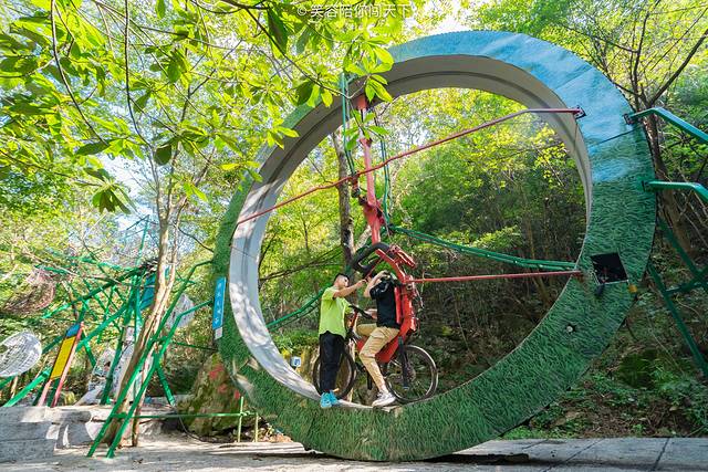 还没走到半山腰,又再次看到了360°自行车。这个刺激性项目最近还是挺火的,有点像单人版360°大摆锤,唯一不同的是,这个摆锤是你亲自“骑”上去的。骑到最高处的时候,那种热血上头的感觉有点爽哦。上次来的时候没看到有人玩,这次刚好可以围观下(每次出门总穿裙子,这种项目虽然心痒痒想玩,但也玩不动)。旁边还有个旋转秋千,可以一起玩。