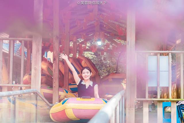 不过最近天气比较热,玩这个还是挺舒服的,时而会有水滴溅在脸上,凉凉的。可是还是要注意一些大转弯哈,坐在前排水花大的时候也是会打湿衣服的,不过好在有景区提供的雨衣可以抵挡一二。
