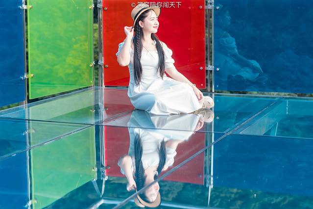 据说这玻璃桥高度仿真的全息7D的音画质感,玻璃碎裂的花纹会在脚下蔓延,炸裂的音效会在耳边回荡,每踏出一步都能感受到心跳在刷新极限。或许我们去的时候人太少了,所以还没开特效,真想试试加了特效的体验,下次再来吧,反正这儿那么有意思。