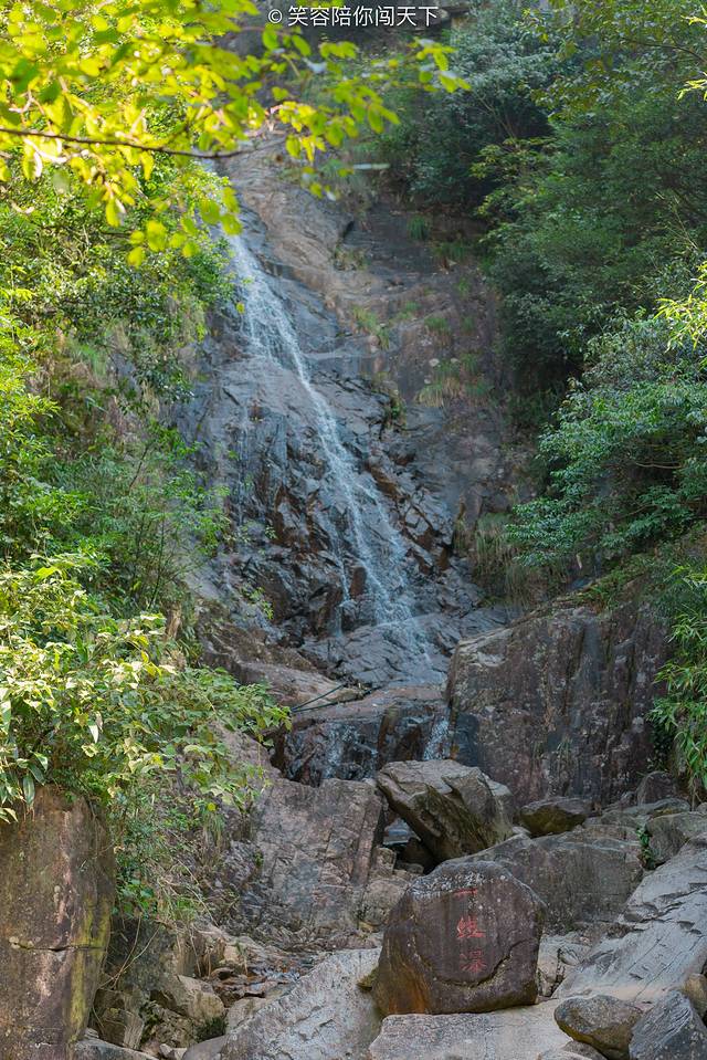 经过一晚的休整,我们又再次上山了。穿过情人座,踏过神龟渡,悟能饮水潭边照一照,一线瀑就渐入眼帘,水流长而不断,远远看去细若银丝,虽然水流比较细,但是听说连枯水期也未曾断流过。是不是很神奇?
