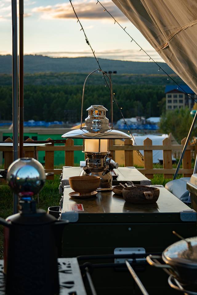 复古帐篷,复古音箱,工业感满满的搪瓷茶杯,舒适的躺椅,露营气罐...烘托出精致的露营仪式感。让生命走在未知的路上,在青山绿水中搭建起自己的移动城堡。