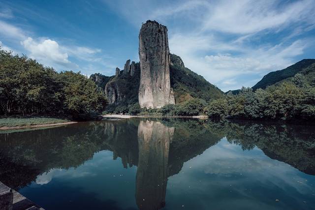 鼎湖峰是仙都最核心的景点,这独立高耸的石峰,在景区的哪个角度都能看到。相传轩辕黄帝将顶鼎至于峰上炼丹,于高处收集天地精华。而在他飞升而去,鼎陷成湖,故称鼎湖峰,也是世界上最小的湖。