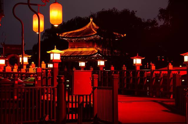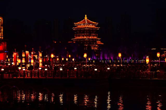 夜幕降临,华灯初上,晚上的大唐芙蓉园在灯光的映衬下,变得更加繁华;还有很多的表演可以看(收费);