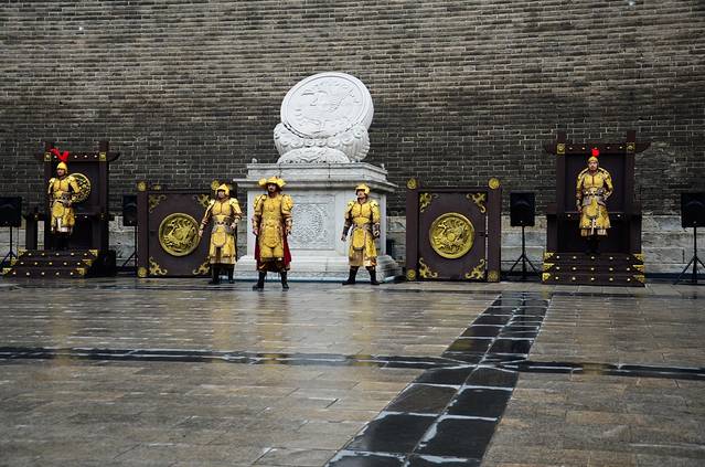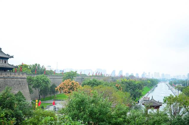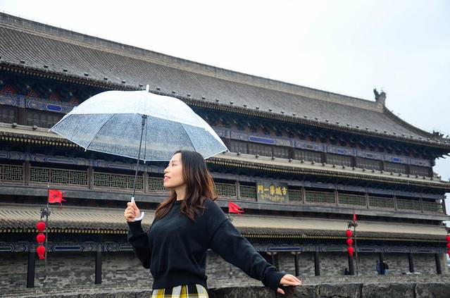 遇到下雨天,还没有那么多人;从北门( 安远 门)上城楼,一路走到东门( 中山 门)的 永兴 坊吃小吃;下午再打车到南门( 永宁 门)看表演;节假日城墙都会有免费表演看