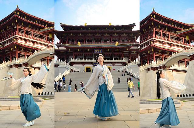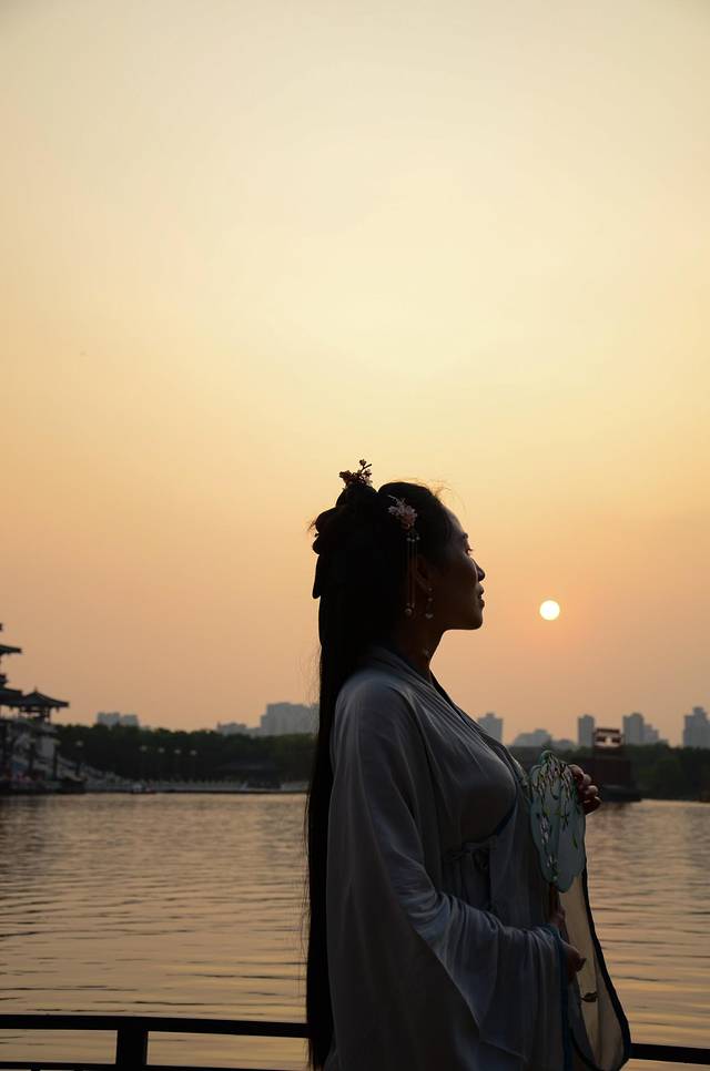 想着要去 西安 玩,出发前一周特意到店里去买了一套魏晋时期的汉服;不知道适合哪个朝代的,就直接到实体店试着买的;大小也合适;在网上买了一堆假发和发饰;在网上学着做的发型;也比较简单;妆容就是手残党的日常妆容;穿着汉服,带着很重的头饰,根本没办法自己用单反拍照;只能先生帮忙拍拍;扇子真的可以买一把;天热可以扇扇风;拍照当道具也是很好,避免手势摆放尴尬;