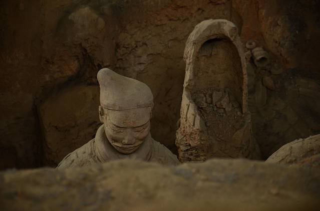 兵马俑,即秦始皇兵马俑,亦简称秦兵马俑或秦俑,位于今 陕西 省 西安 市 临潼 区秦始皇陵以东1.5公里处的兵马俑坑内。
