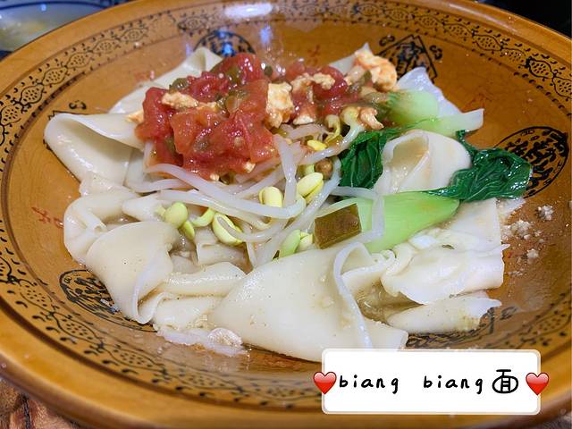biangbiang面 陕西 十大怪之一,之所以这么有名,据说是因为康熙爷当年特别喜欢吃它,其面宽而厚,特别像裤腰带,由此得名。