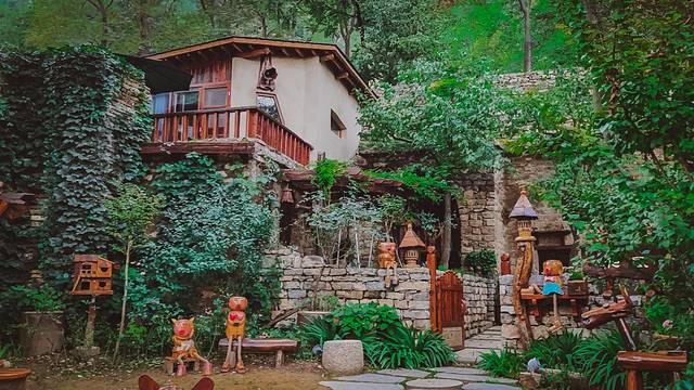 ⭐️和一般的民宿不一样,康家坪民宿的原身是有着千年历史的康家坪古村。村民迁走后,景区请来了台湾设计师,以原来窑洞房为基础,进行改造。如今走进这里,无论是木雕的小动物,还是满路的鲜花,走进这里就像走进了一个童话世界,住下就会爱上。