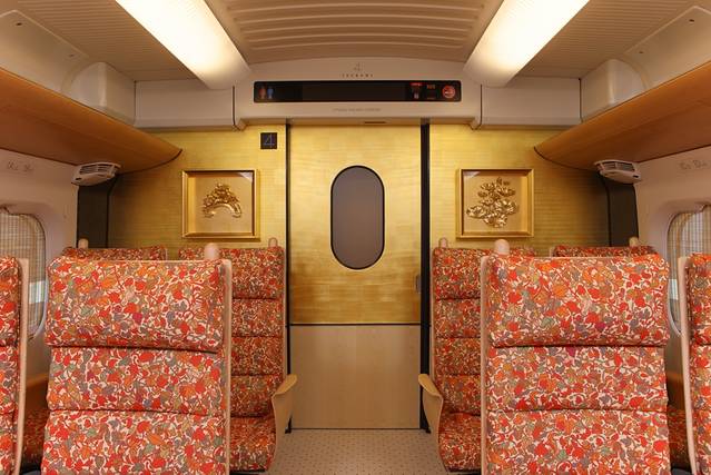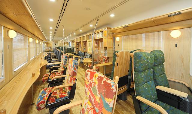 今年是九州新干线全线运营10周年,这条线路的列车上充满浓郁日本风情的内饰装潢与其他地区的新干线有显著区别。座椅等设施使用木材制成,是日本传统颜色白、红、黑和琉璃色。坐垫采用京都传统织物“西阵织”,乘客可以在长途旅行中体验日式的惬意情调。