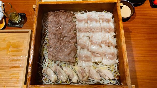 菜单中有涮牛肉、蒸菜、铁板烧等菜品。蒸菜注重食材的原味,其做法是将鹿儿岛和牛、黑猪和土鸡等用蒸气蒸熟,然后跟涮牛肉一样蘸汤调料吃。