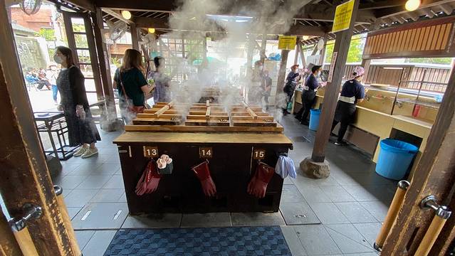 这种利用温泉蒸气将食材蒸熟的方法极大地保持了食材的原味,既养生又环保,游客可以在铁轮温泉地区的“地狱蒸”餐厅品尝。