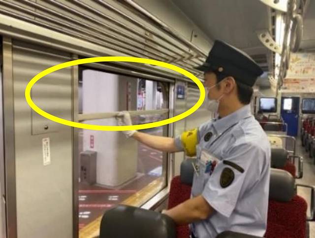 为确保安全,日本的交通设施大多会对车厢进行细致的消毒工作,并开启空调系统使车内保持良好的通风状态,避免车厢成为密闭空间。JR九州重视公共交通设施的安全卫生工作,对乘客出入的区域实施清洁消毒,防范人员间的飞沫传播。