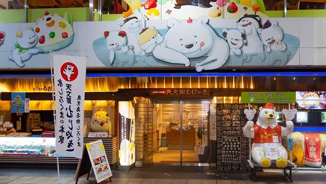 甜品中最知名的莫过于白熊刨冰。刨冰上淋上炼乳,摆满罐头水果,再铺一层红豆沙馅。这种刨冰的发祥地就是鹿儿岛市。