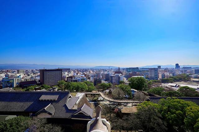 由日本战国时期的名将武将加藤清正修建完成,号称“难攻不落之城”,是日本三大名城之一。熊本城位于熊本市中心,是熊本的地标景观。城垣在熊本地震中有所损毁,随后被翻新、复原。2021年6月28日天守阁重新对外开放,熊本城内也开始开门迎客。