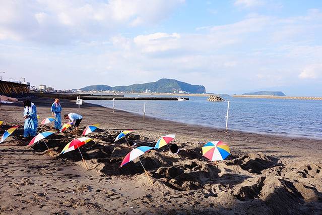 砂蒸温泉指将身体埋入因地温而受热的沙土里,用沙的热量和重量去除疲劳。在指宿就能体验世界罕见的100%纯天然砂蒸温泉。