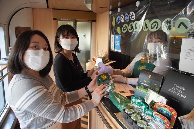车上有纪念品销售,选用阿苏的新鲜鸡蛋和牛奶制成的儿童布丁”“成人布丁”一定不要错过。