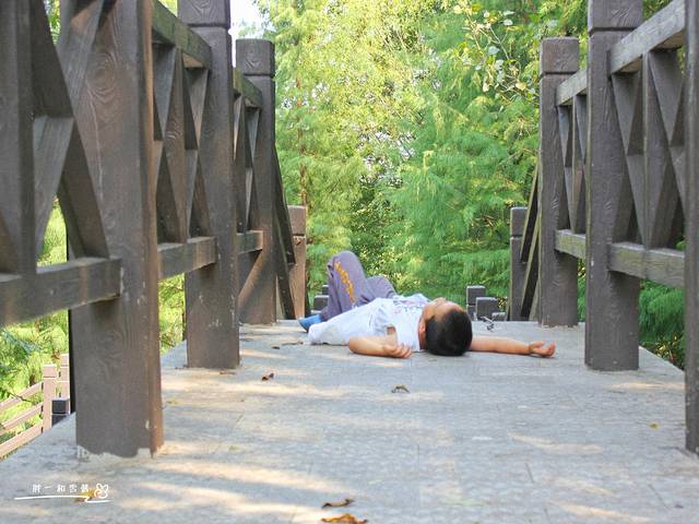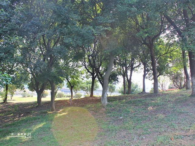 白天,公园人烟稀少。可溜达至此。广场长亭后方,有一处树荫,小憩纳凉、露营玩耍都可以。