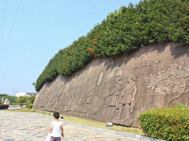 在遗址公园西南面,有一面古文化雕刻的墙壁,述说着宝塔山遗址公园与古镇湖熟的前世今生。