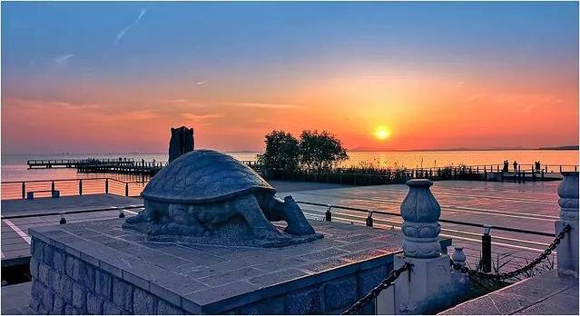 这是一座依山傍水的亲水休闲公园,游客可以通过观水、亲水、戏水、瞰水、听水来感受巢湖。龟山海拔126米,山形酷似一只巨大的神龟探入巢湖,畅饮巢湖之水,在夕阳的照射下构成“夕照龟饮”的画面。景区建设有中心平台、栈桥及两侧栈道、园林绿化、人行道、湿地等滨水游览设施。在山上,远眺巢湖美景,感受巢湖的浩渺烟波,简直美的让人如痴如醉啊~