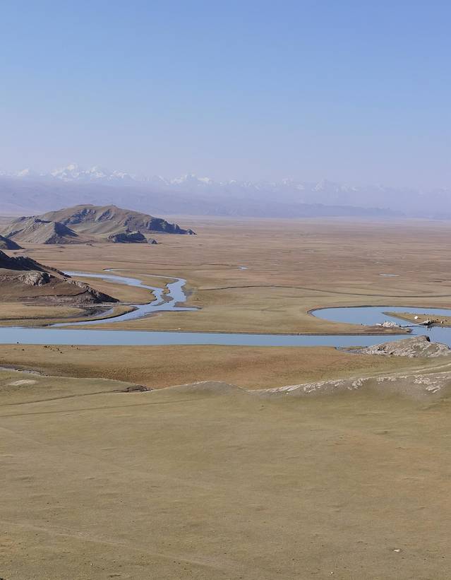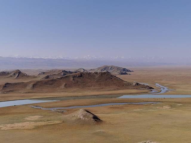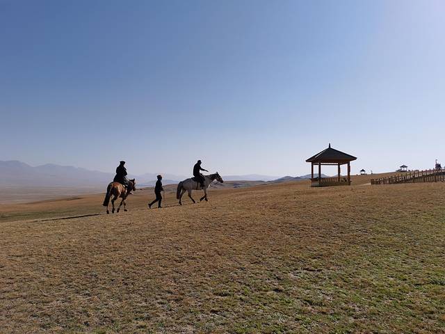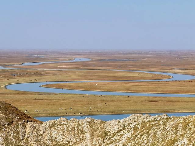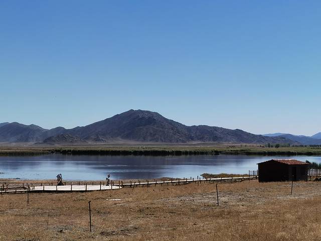 一是想早点到景区,二是不知道独库公路能不能走,我们又起大早摸黑上路。在G218国道和G217国道的岔路口,司机把车子开上G217 国道,也就是独库公路。这样大约节约2小时路程,我们不到8点半就到达景区售票处。可惜夜色无边,独库公路的风景隐藏在夜幕中看不到。破晓时分的巴音布鲁克真冷啊,大家把所有御寒的衣服都穿上了。9点钟景区开门。第一站,天鹅观景台,这个季节没有天鹅,只有红嘴鸥静静地站在观景台的栏杆上,等待游客惊扰。第二站是个寺院,导游不让下车。第三站也是最后一站,九曲十八弯。这里的风景美极了,如果日落时分会更美。巴音布鲁克实际上是天山山脉中的高山盆地,巨大的草场没有树,一棵都没有!东归的土尔扈特部一部分人被清政府安置在这个世外桃源。景区外有酒店,自驾朋友可以住下,下午进景区。
