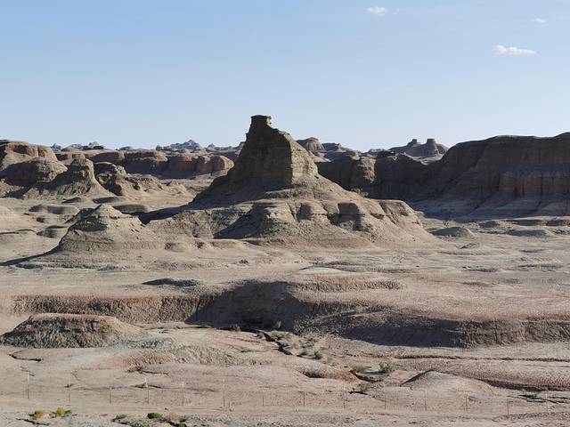 今天的景区是世界魔鬼城,名头很大,观赏性不如敦煌魔鬼城(个人见解)。今天的路程是从北向南400多 km,沿着准噶尔盆地的边缘到克拉玛依。越接近克拉玛依,地貌越诡异,起伏的山丘表面覆盖黑色砂砾,有的孤独,有的连绵,有的看上去像煤矸石堆。不愧是石油城,磕头机随处可见,成片成片地出现在视野中。