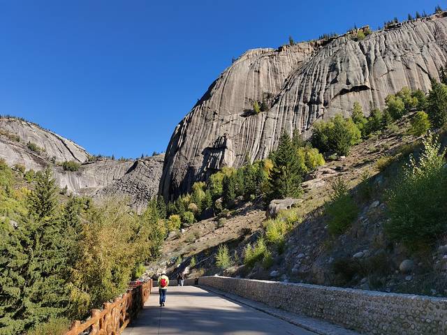 今天游览的景区是可可托海,据说因为一首歌这个地方名扬四方,我没听过,赶紧补课。这个叫做“海”的景区没有海,蒙古语的意思是“蓝色的河湾”,因为这里有额尔齐斯河——中国唯一注入北冰洋水系的外流河。可可托海景区的主体是额尔齐斯大峡谷,很长,但是真正开发出来供游玩的地方很小,主要的观景点是一块巨大的花岗岩石头——神钟山,还有岩石上的冰臼,景区内额尔齐斯河的水量不大。景区区间车大约行驶40分钟,回程右手边沿途的花岗岩很有特点,但是都一晃而过。如果把沿途风光纳入步行游览范围,更能让游客体会“世界地质公园”的内涵。