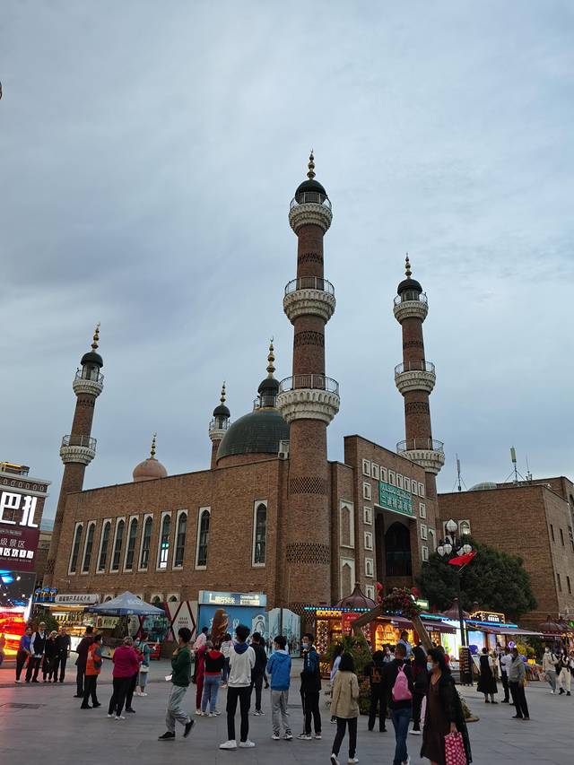 至此,旅行团解散,大家自由活动。晚上我们去国际大巴扎,那里户外游览也必须戴口罩。