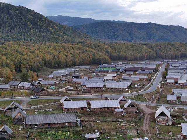 换乘中心附近的喀纳斯老村已经成为民宿和商店,还有供参观的木屋。
