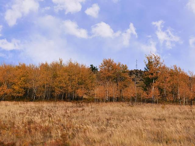 绿红黄,层林染,湖荡漾,水旖旎。禾木村,木屋齐,晨曦中,炊烟起。