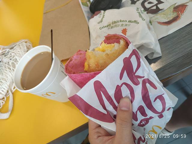 麦当劳的过早是最好的选择,这个紫色包着的大龙以为是纸,是芥末酱的味道