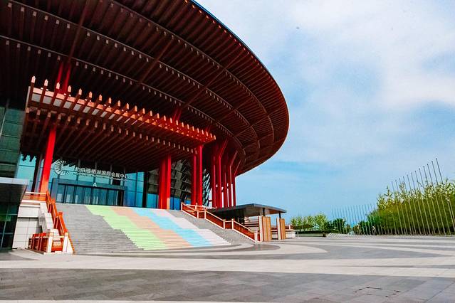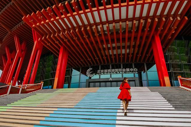 当在逃公主离开自己的古堡,最后一个想要打卡的就是雁栖湖。都说在雁栖湖最标志的建筑就是这个朱红色建筑,顶部被设计成逐渐向上放大的圆盘,如同天坛的倒影一般,这就是北京雁栖湖国际会展中心。