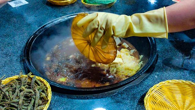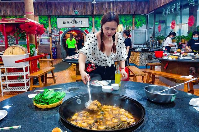 我就是跟我一起住在【不老·山居】的住户一起拼的铁锅炖。