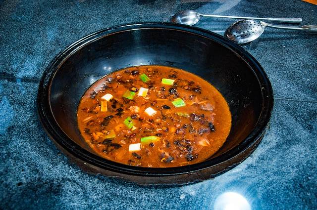 酱香味道浓郁,现杀的活鱼在柴火大锅上炖煮,这份美味是密云独一份的。