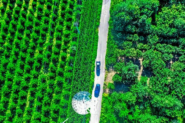 在不老屯村的野生路段旁排列着,共28面直径为9米的抛物天线组成的综合孔径射电望远镜阵列,镇站之宝是那50米射电望远镜。除此之外,还建有30米的FAST实验模型。